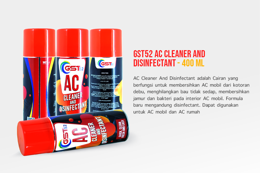 AC Cleaner And Disinfectant adalah Cairan yang berfungsi untuk membersihkan AC mobil dari kotoran debu, menghilangkan bau tidak sedap, membersihkan jamur dan bakteri pada interior AC mobil. Formula baru mengandung disinfectant. Dapat digunakan untuk AC mobil dan AC rumah